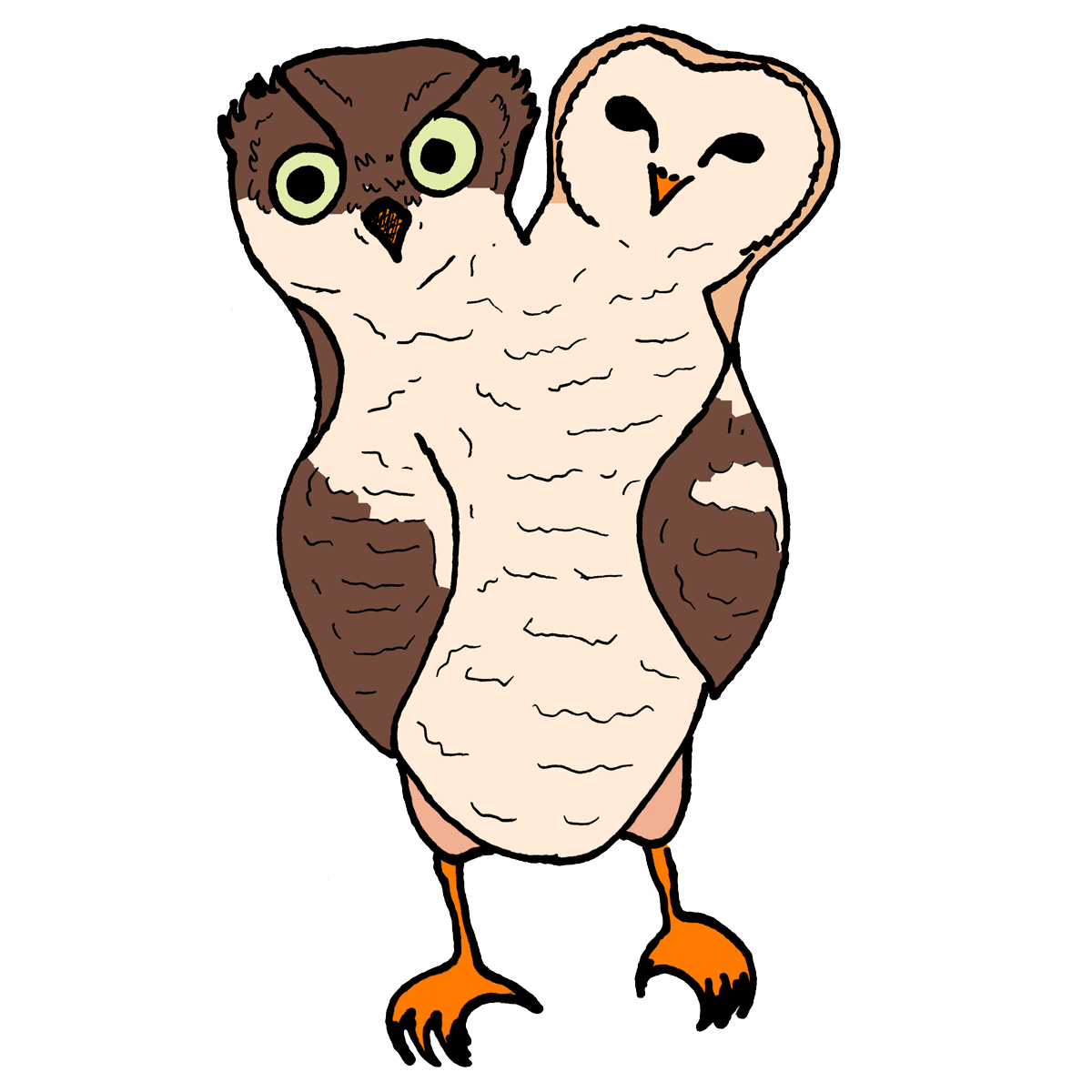 Dvoglava sova rijetko leti jer se njene glave ne mogu dogovoriti u kom će pravcu. Ako jedna glava hoće da ide desno, druga glava naredi krilima da skrenu lijevo. Tako da je dvoglavu sovu lako prepoznati u letu – ona nikada ne leti ravno, nego cik-cak, malo desno, malo lijevo.